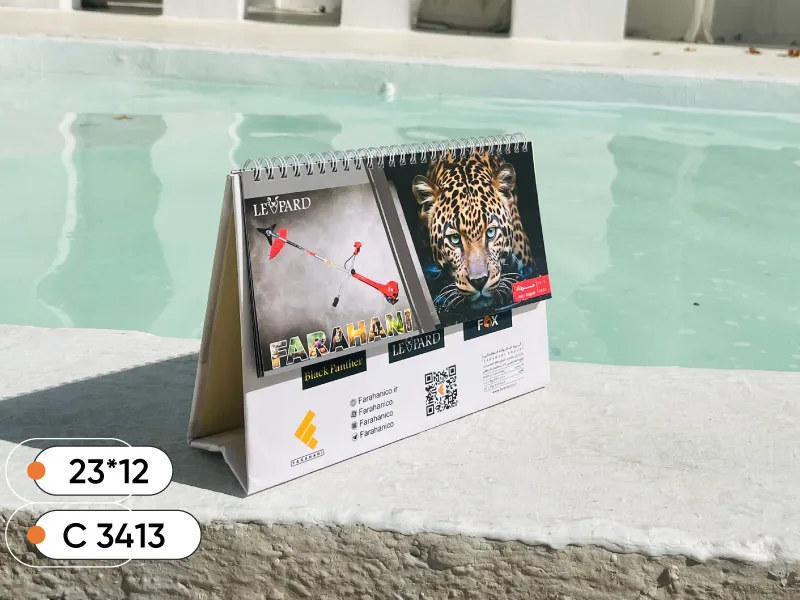 | تقویم رومیزی طلاکوب | پایه سخت با روکش گلاسه مات، صفحات با چاپ طلایی یا نقرهای، طلاکوب | ظاهر شیک و چشمنواز، استفاده از طلاکوب یا برجستهکاری | مناسب برای هدیههای خاص، مدیران ارشد و جلسات رسمی |